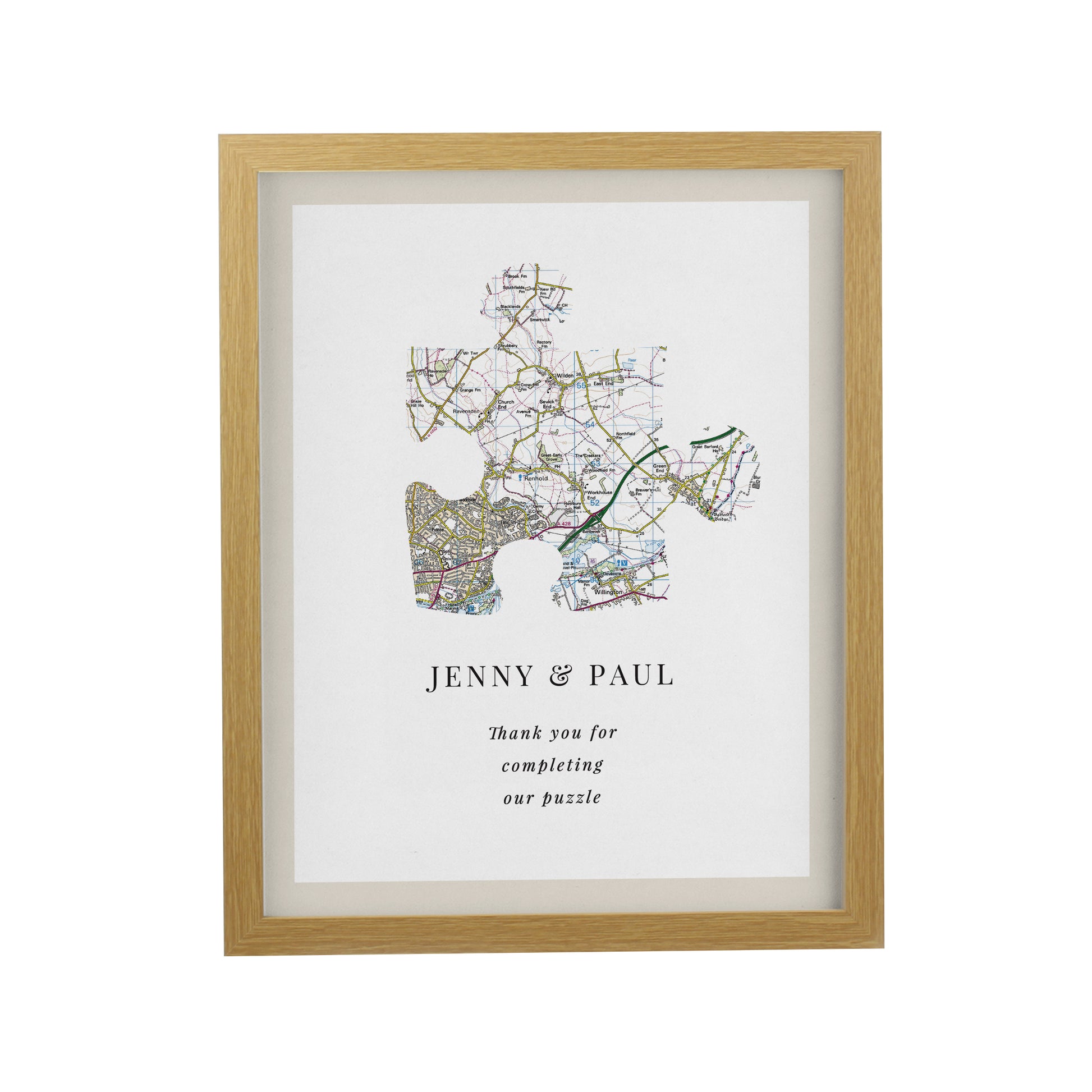 Personalised Present Day Map Puzzle Piece Oak Poster Frame