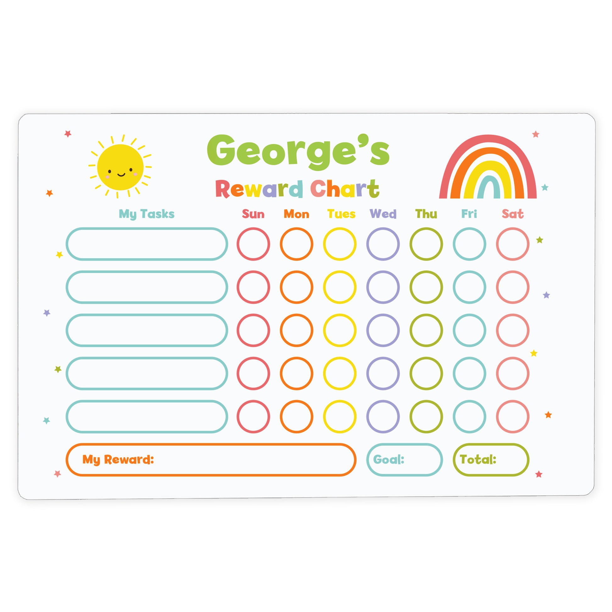 Use this one of a kind personalised reward chart to mark off the stars leading to their reward!