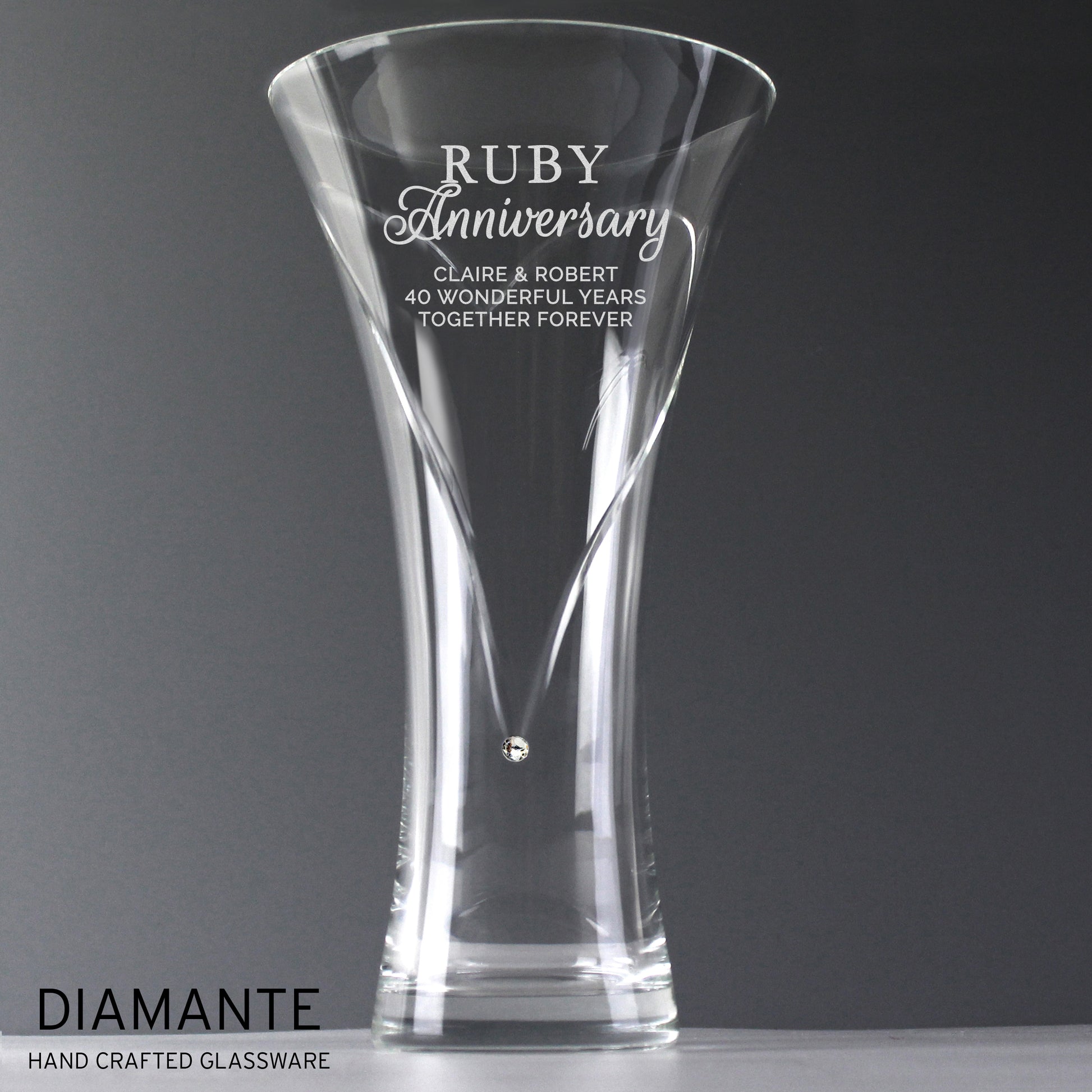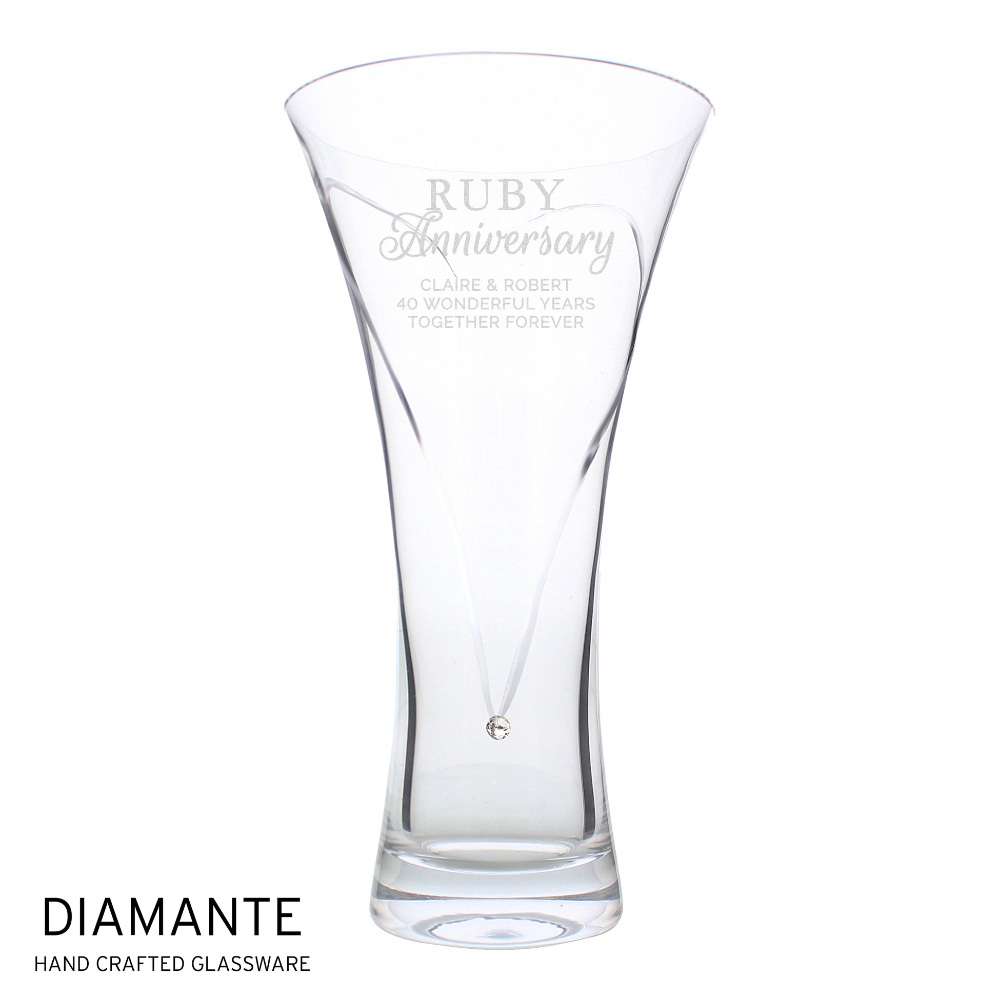 Personalised Ruby Anniversary Large Hand Cut Diamante Heart Vase