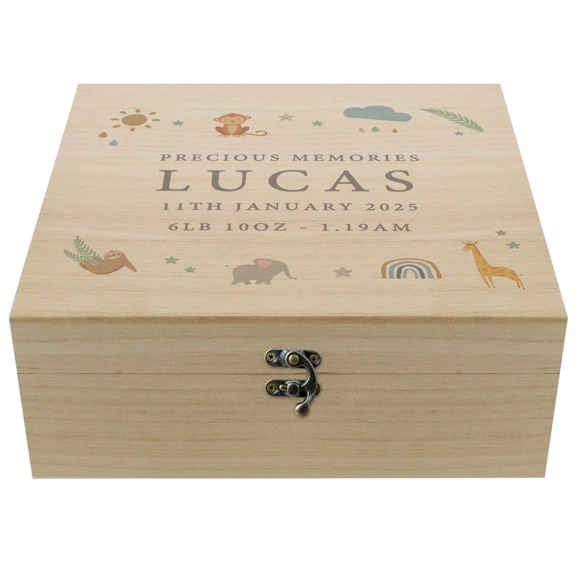 Personalised Safari Animals Large Wooden Keepsake Box