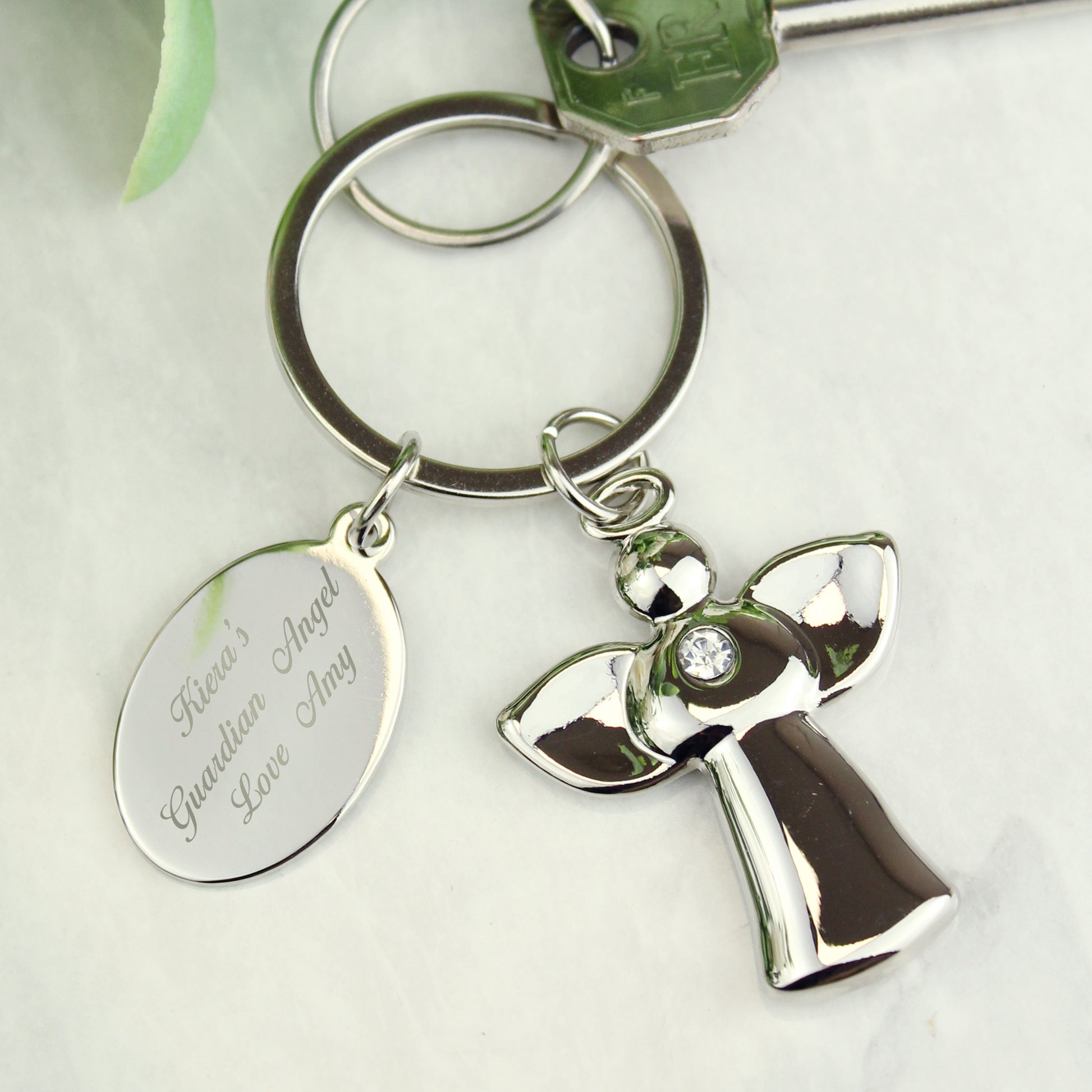 Personalise the tag on this precious Angel Keyring with any message over 3 lines of up to 10 characters on each line.