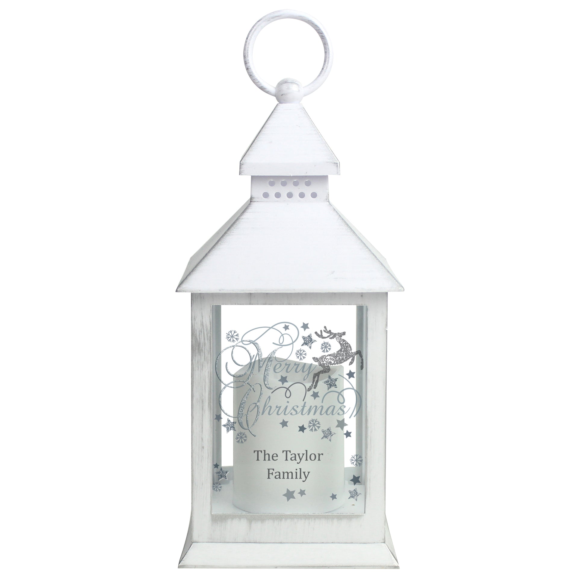 Personalised Silver Reindeer White Lantern