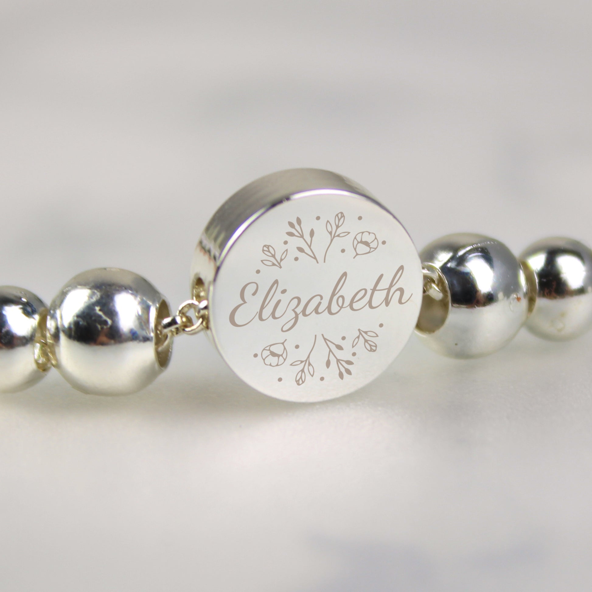 Add a touch of elegance and sentimentality to your accessory collection with our Personalised Silver Tone Wild Flowers Disc Bracelet.