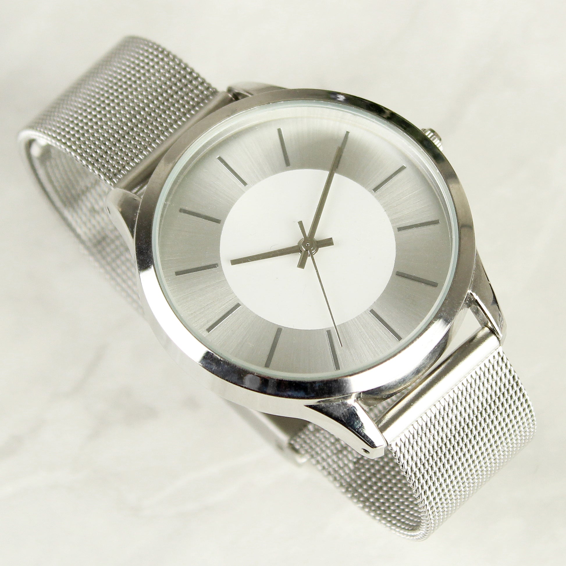 This Personalised Unisex Silver with Mesh Style Strap Watch is the perfect gift for any occasion!