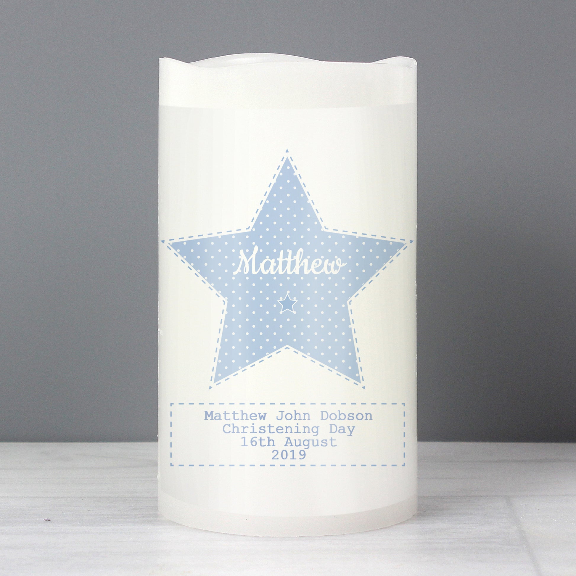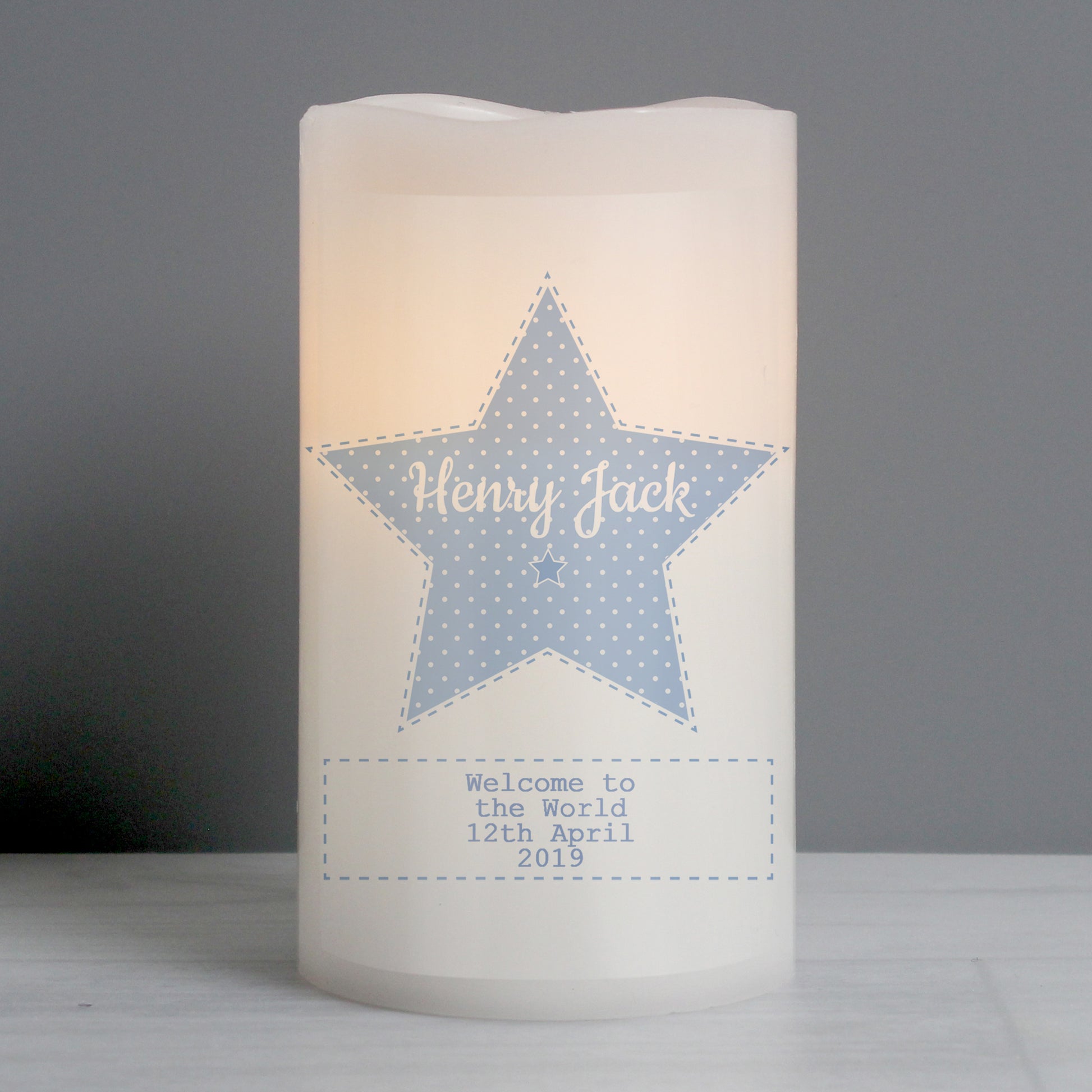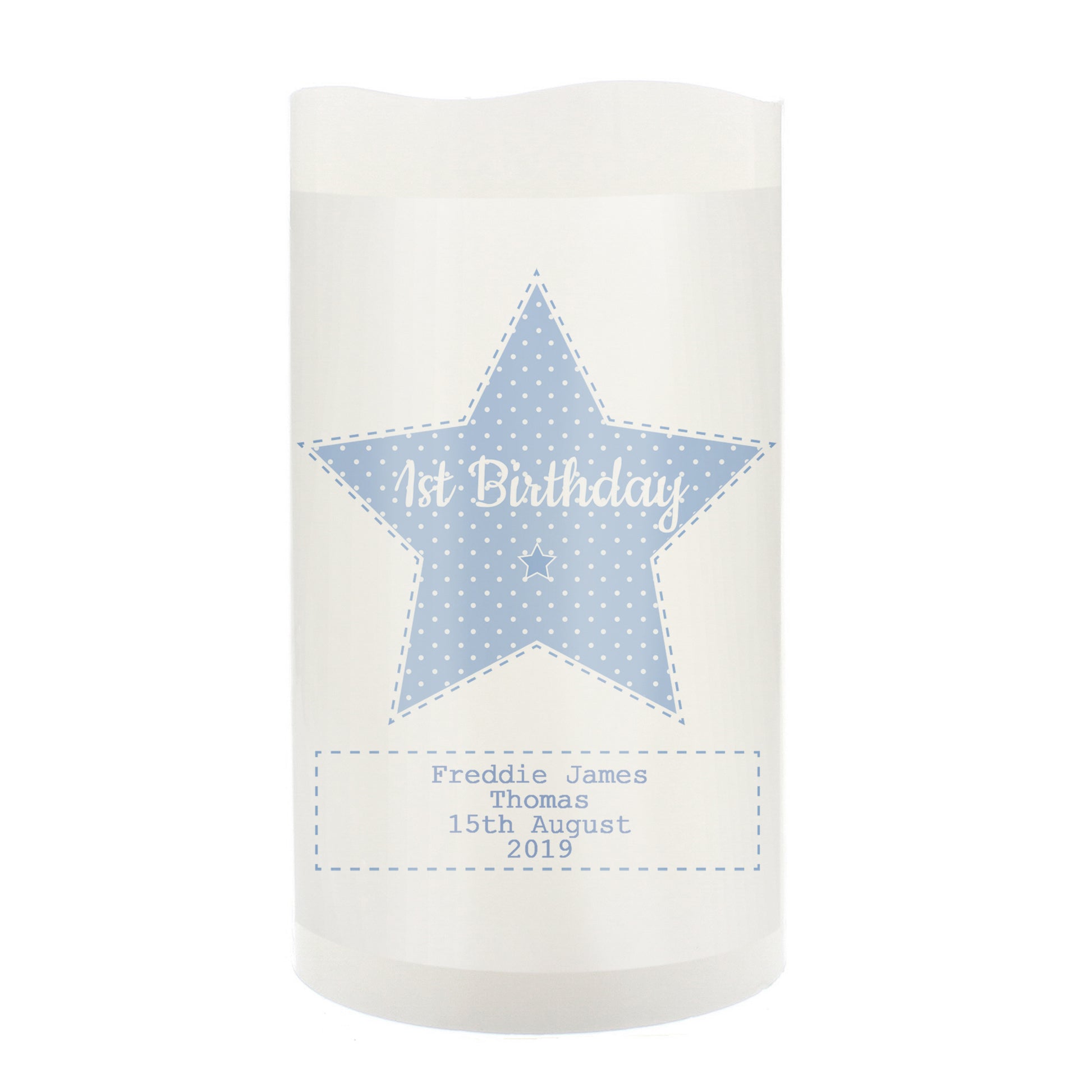 Personalised Stitch & Dot Baby Boy Nightlight LED Candle