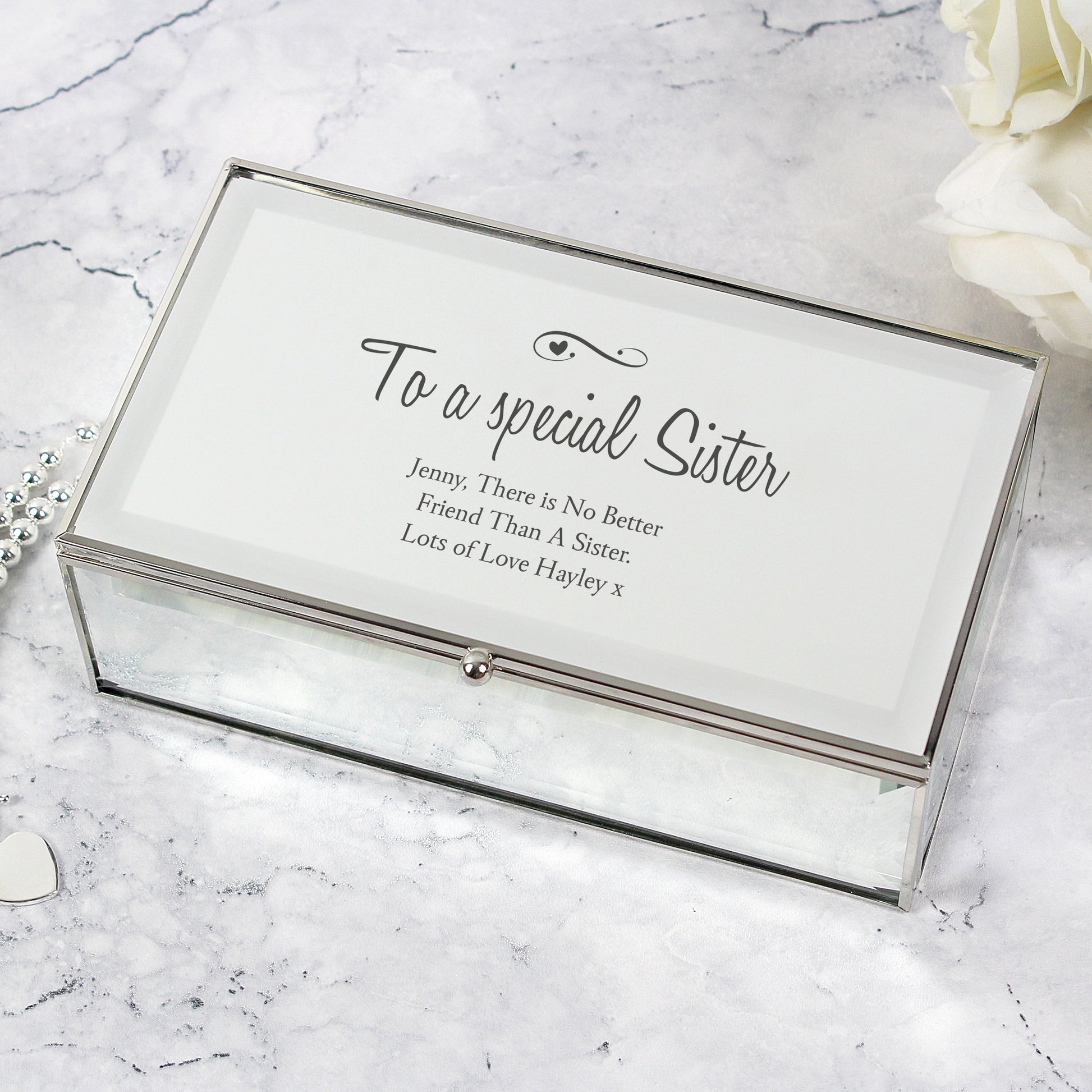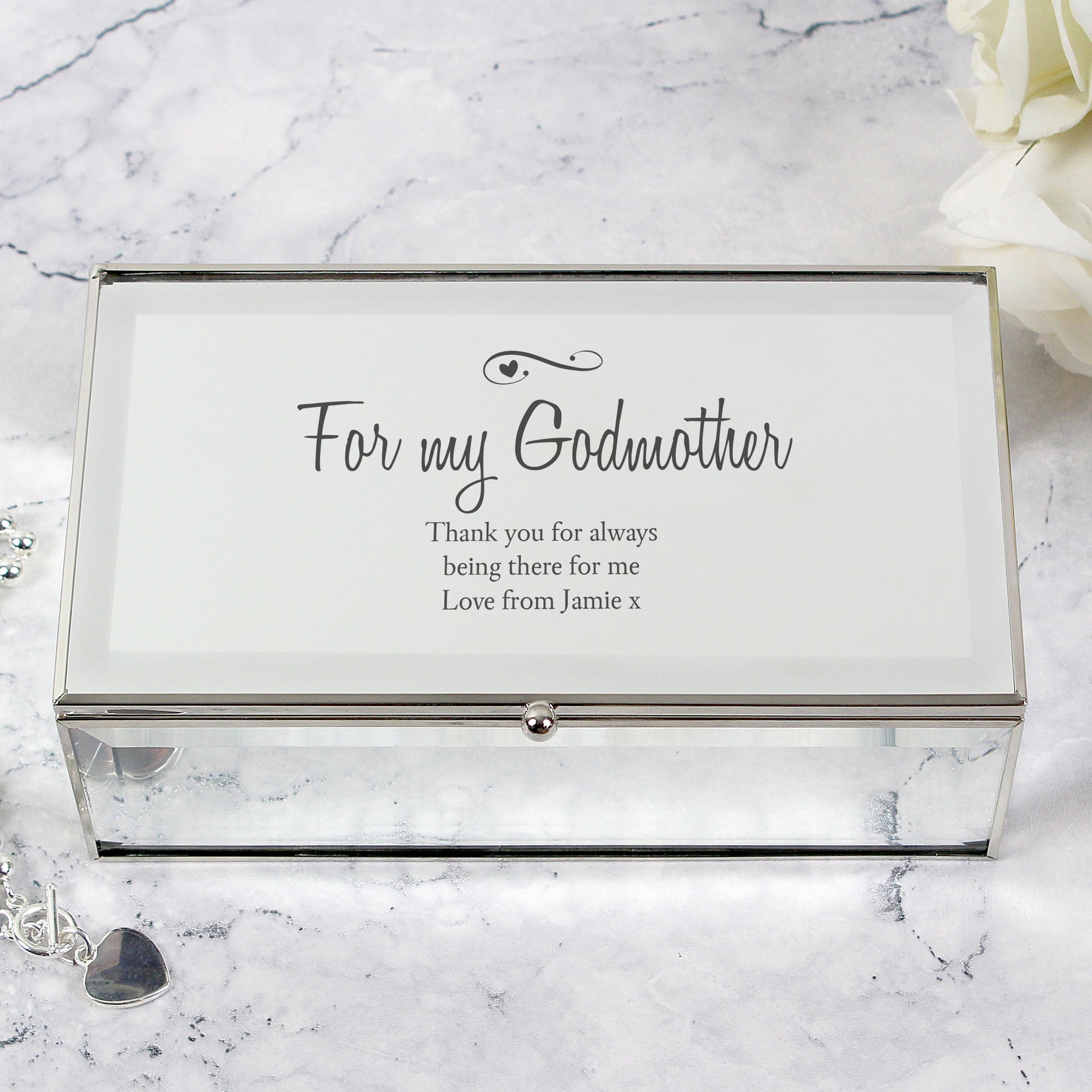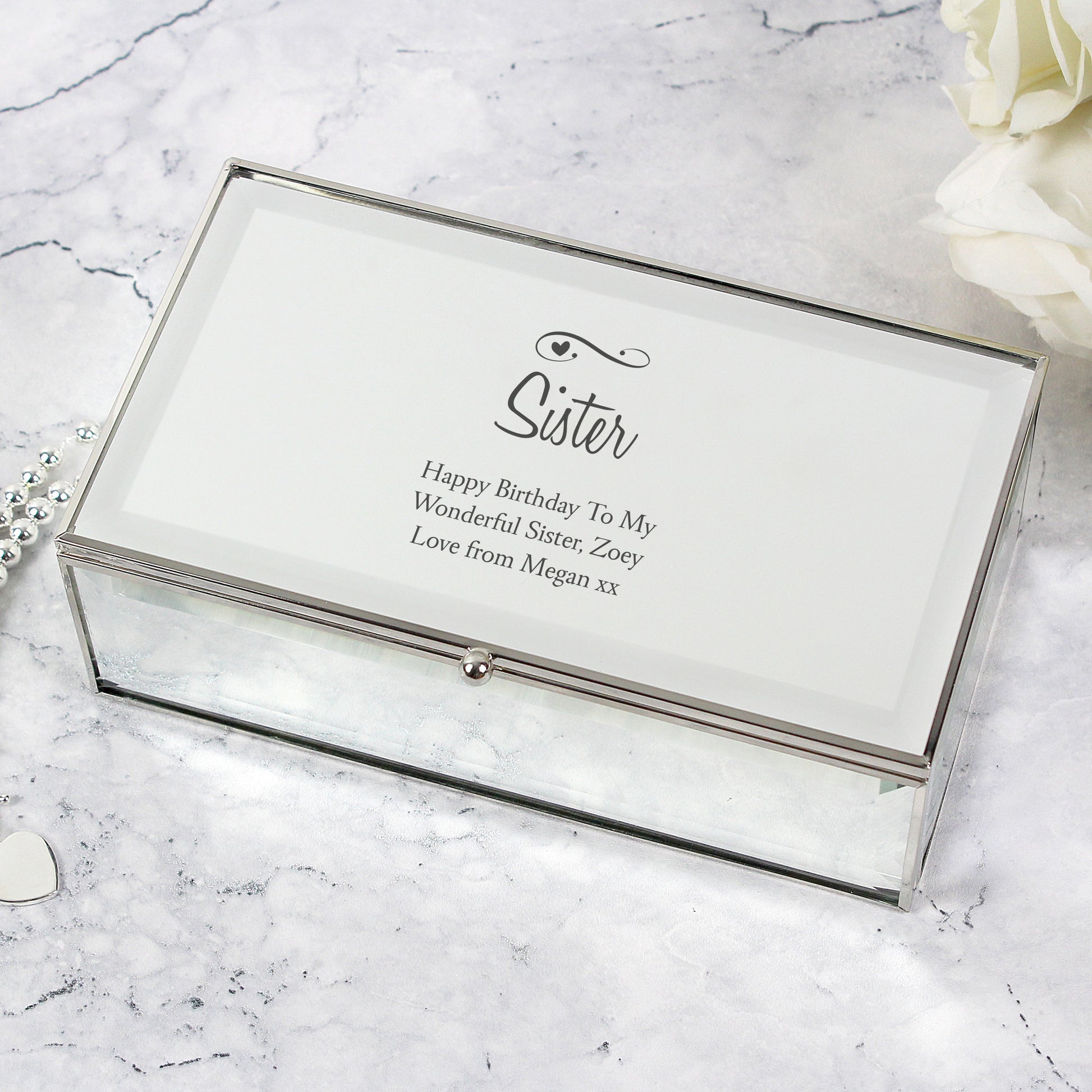 Personalised Swirls & Hearts Mirrored Jewellery Box