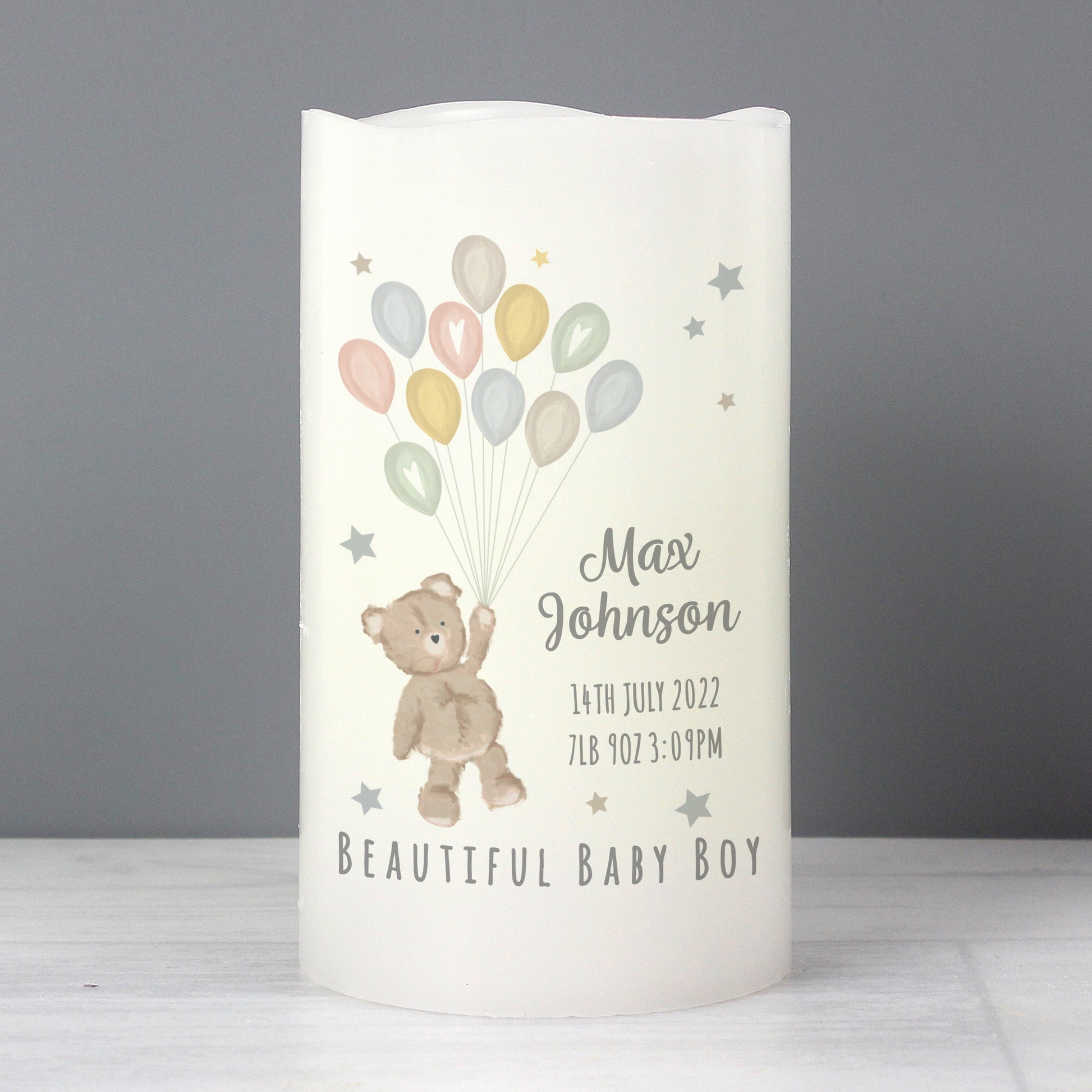This beautiful and safe Teddy & Balloons LED Candle is the perfect addition to any little ones bedroom.