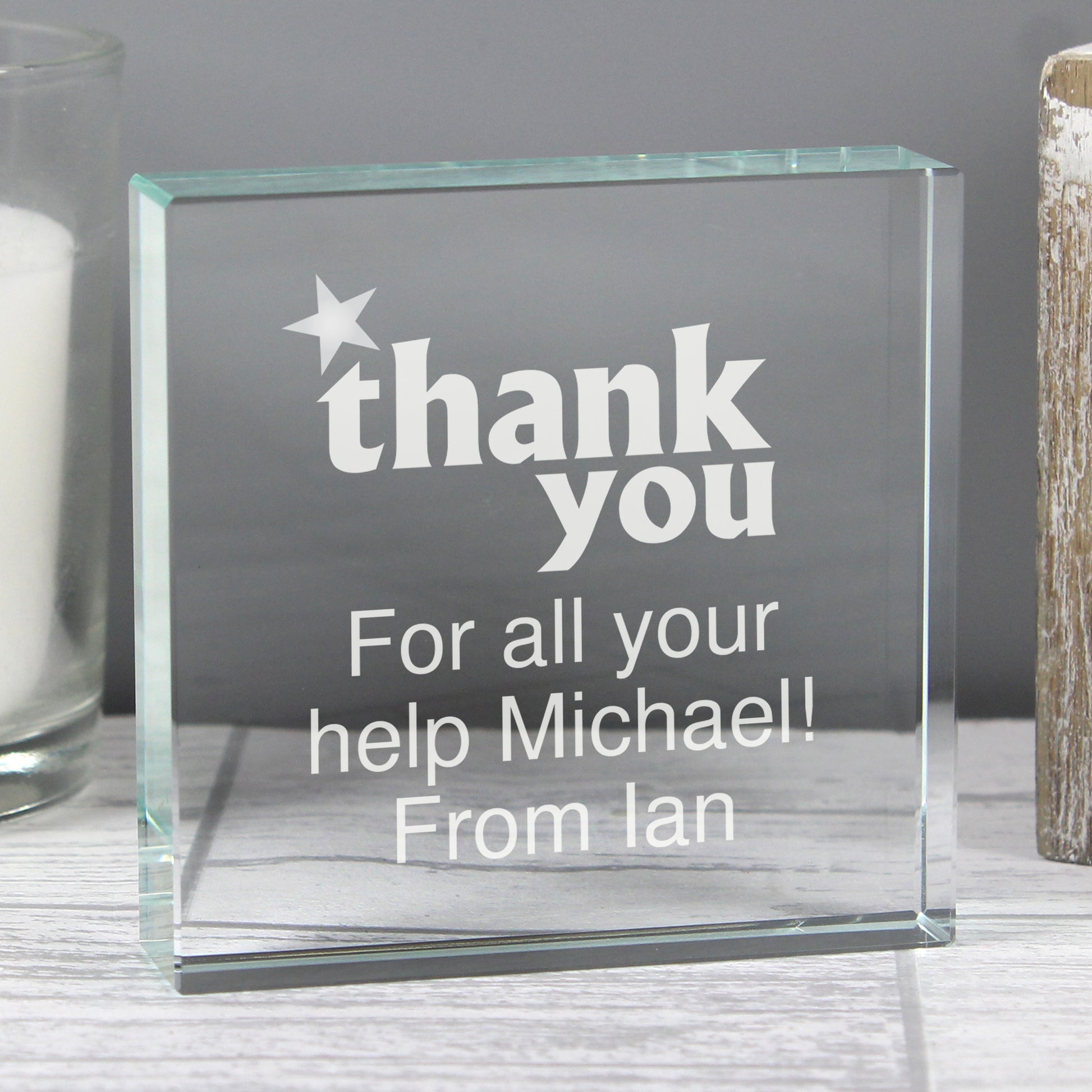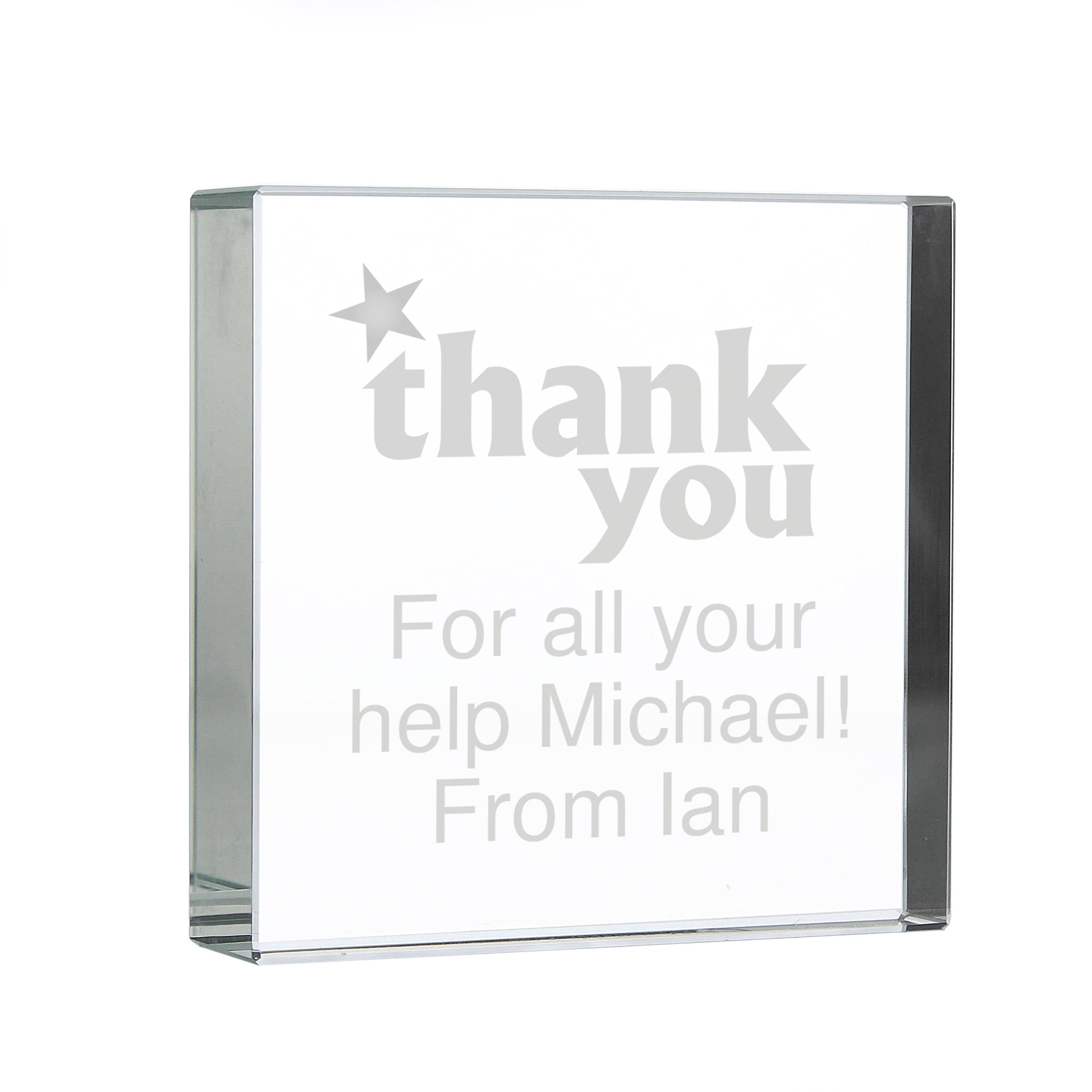 Personalise this Thank You Crystal Block with any message over 3 lines up to 15 characters per line.