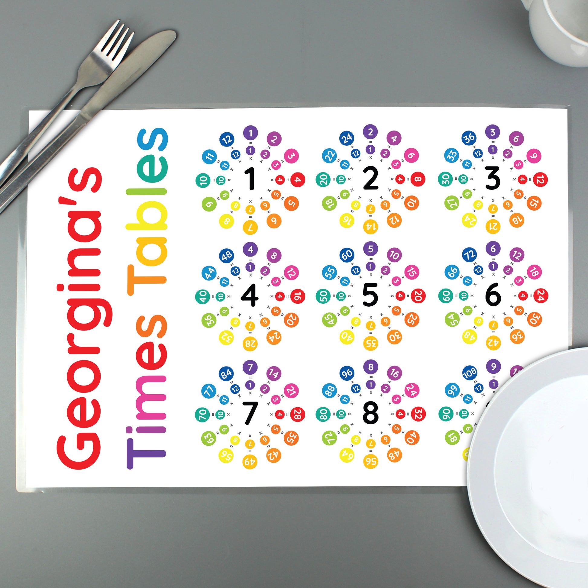 This Personalised Times Table Placemat is the perfect way to encourage learning while still having fun.