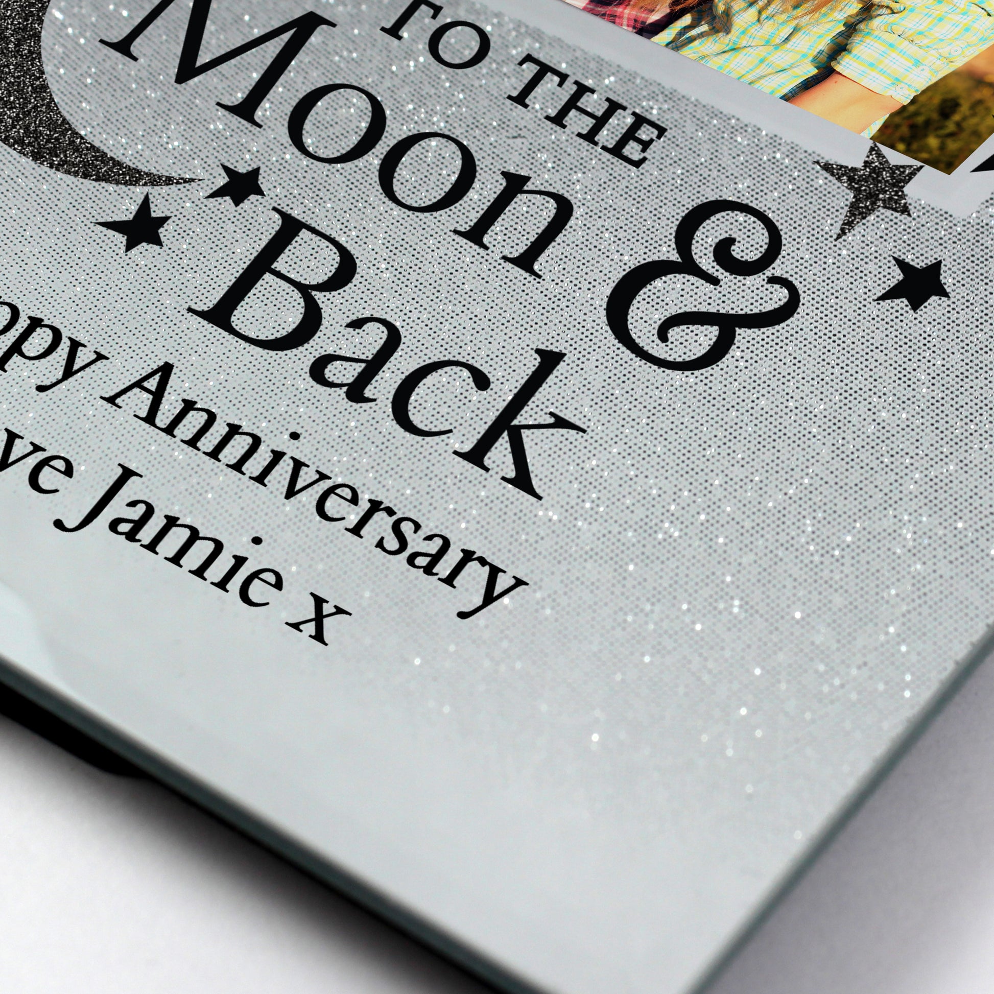Personalised To the Moon and Back 4x4 Glitter Glass Photo Frame