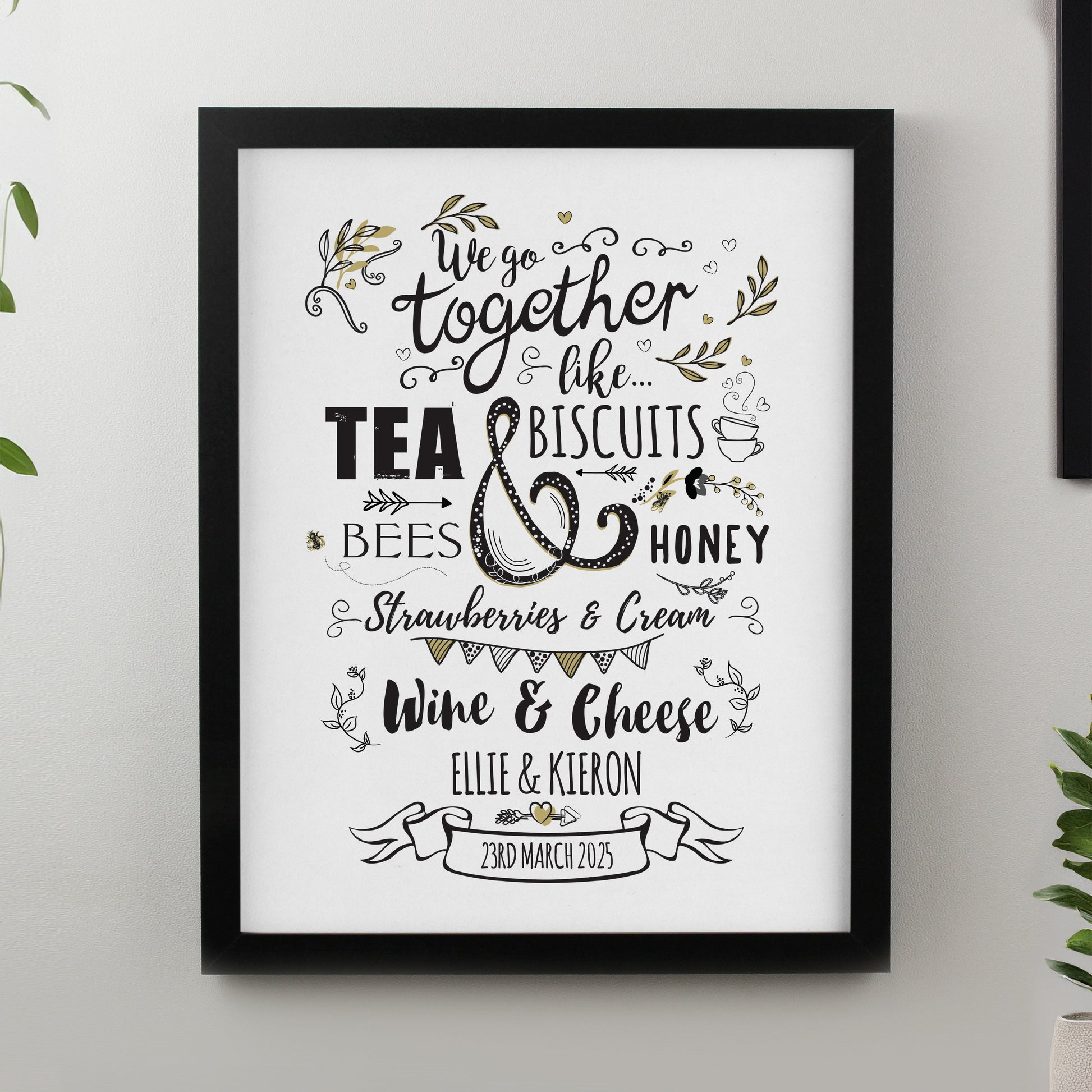 The words 'We go together like...Tea & Biscuits, Bees & Honey, Strawberries & Cream, Wine & Cheese' are fixed.