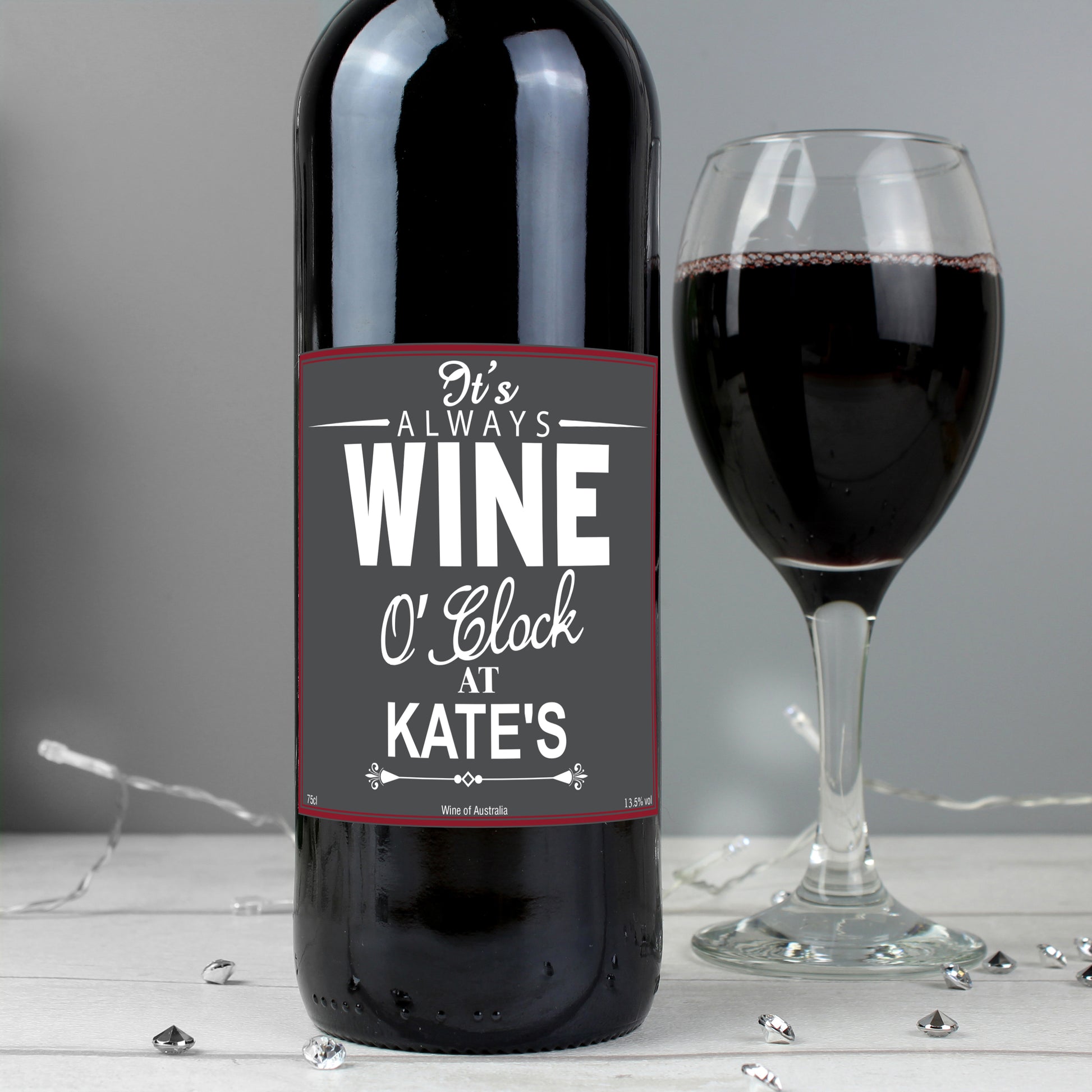 The words ''It's ALWAYS WINE O'Clock AT'' are fixed
