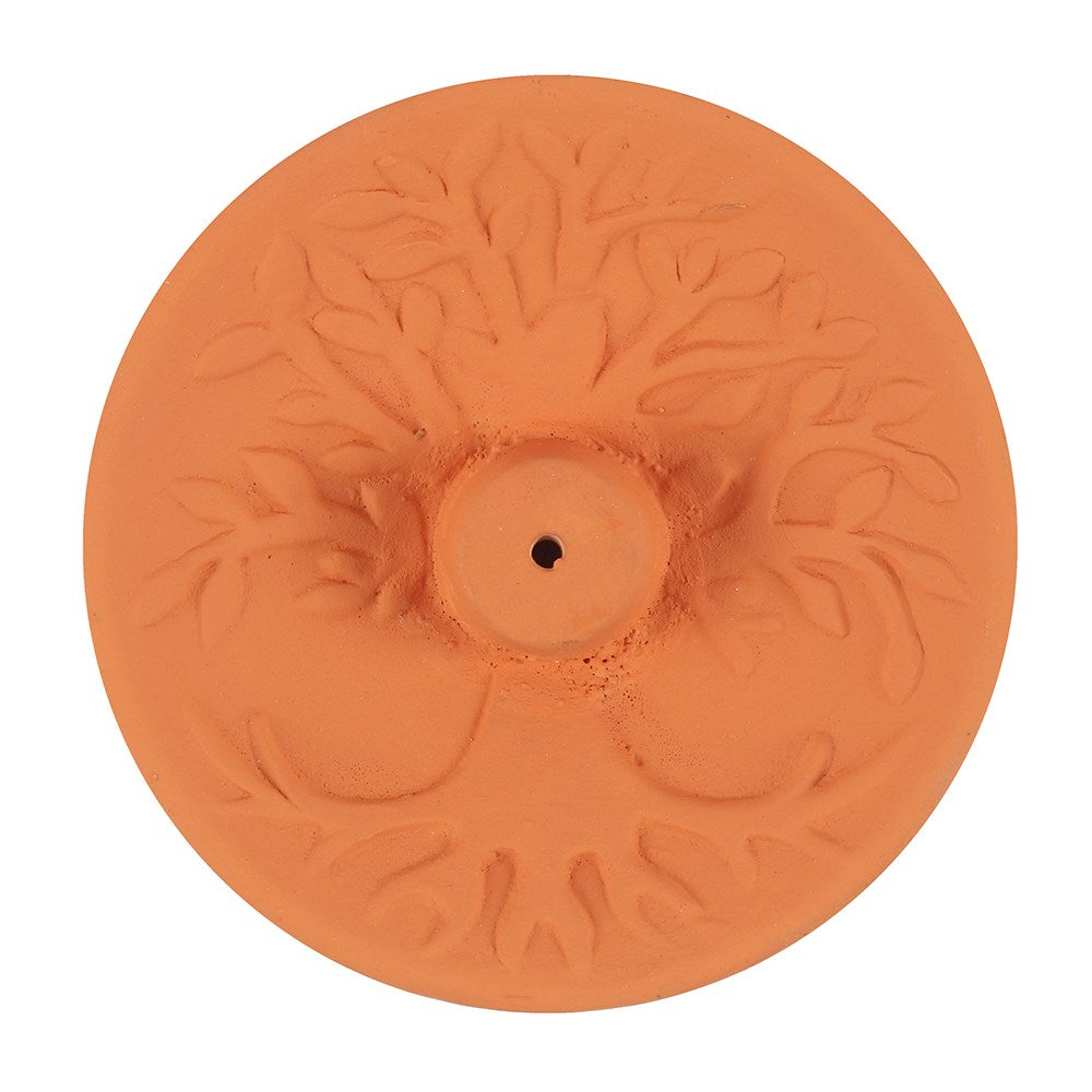 Eyecatching terracotta incense stick holder plate featuring an intricate Tree of Life design. Perfect in size for placing on a sacred altar or sunny windowsill. Designed by Something Different Wholesale.