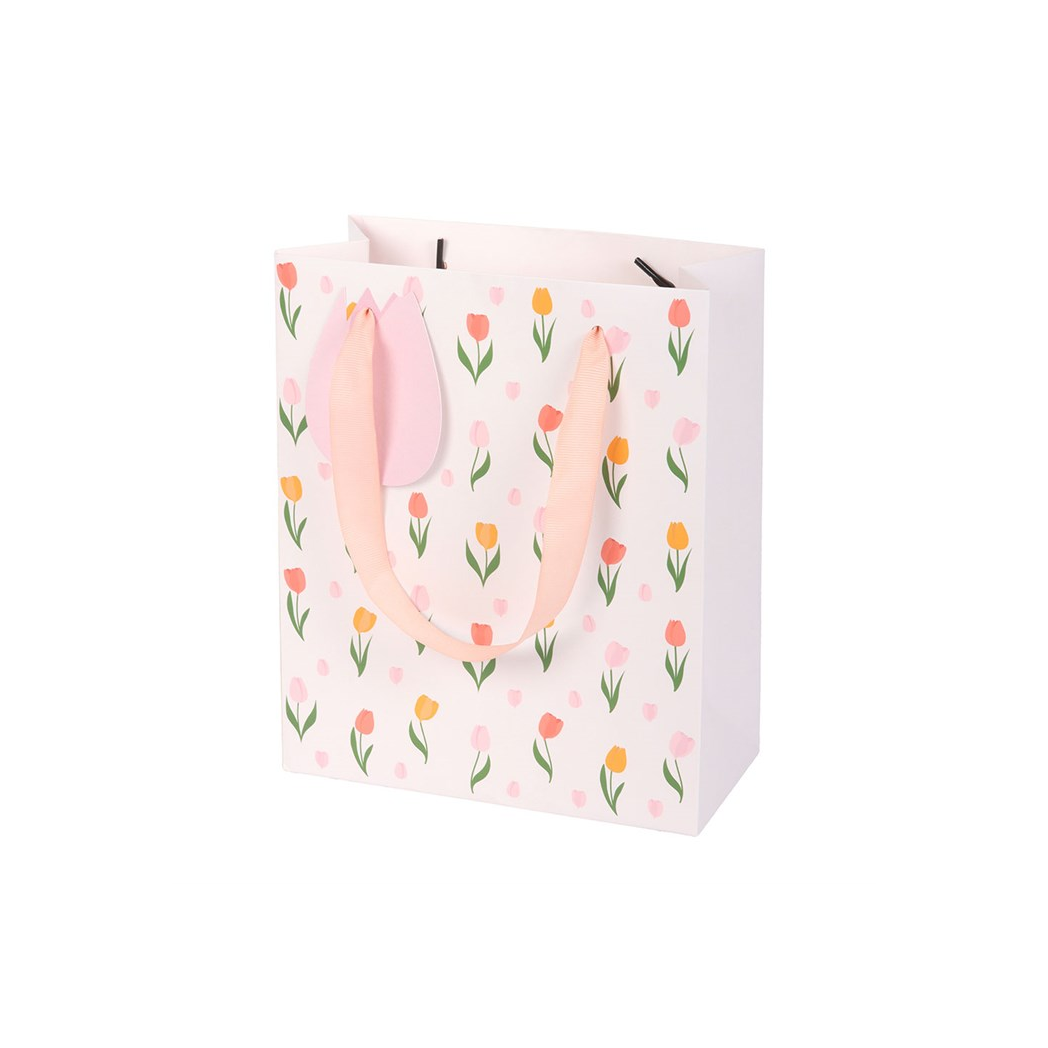 Wrap up your thoughtful gifts in this paper gift bag featuring a bright and cheerful tulip design. A lovely finishing touch for Mother's Day, birthdays, or floral-themed gifting. 23cm.